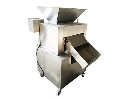 工作原理:飛刀繞自身軸線在固定不動的底刀間隙內(nèi)旋轉(zhuǎn),從而使果蔬破碎,轉(zhuǎn)子上有四組飛刀,底刀為一組,視果蔬種類不同,出料斗有斗式和管式兩種型式。在進料斗上部加上緩沖裝置,可得到粒度更細的物料。