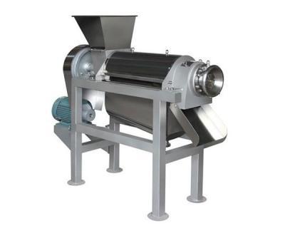 原料加入進料斗中,在螺旋的推進下受壓,其壓榨的汁液通過過濾網流入底部的盛汁器,而廢料則通過螺旋及調壓的錐形部分之間形成的環狀空隙排出,調壓頭沿軸向的移動可調整空隙的大小。用于順時針(從設備的出渣槽向進料斗端看轉動手輪軸時承座時,調壓頭向左,空隙即縮小、反之則空隙變大。)改變空隙的大小,即調整排渣的阻力。即可改變出渣率,但如果空隙過小,在強力擠壓下,部分渣的顆粒會和汁一起通過過濾網被擠出,盡管出汁增加,但汁的質量相對下降,空隙的大小應視用戶具體工藝要求而定。