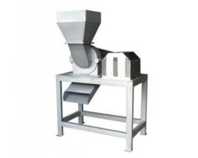 工作原理:飛刀繞自身軸線在固定不動(dòng)的底刀間隙內(nèi)旋轉(zhuǎn),從而使果蔬破碎,轉(zhuǎn)子上有四組飛刀,底刀為一組,視果蔬種類不同,出料斗有斗式和管式兩種型式。在進(jìn)料斗上部加上緩沖裝置,可得到粒度更細(xì)的物料。